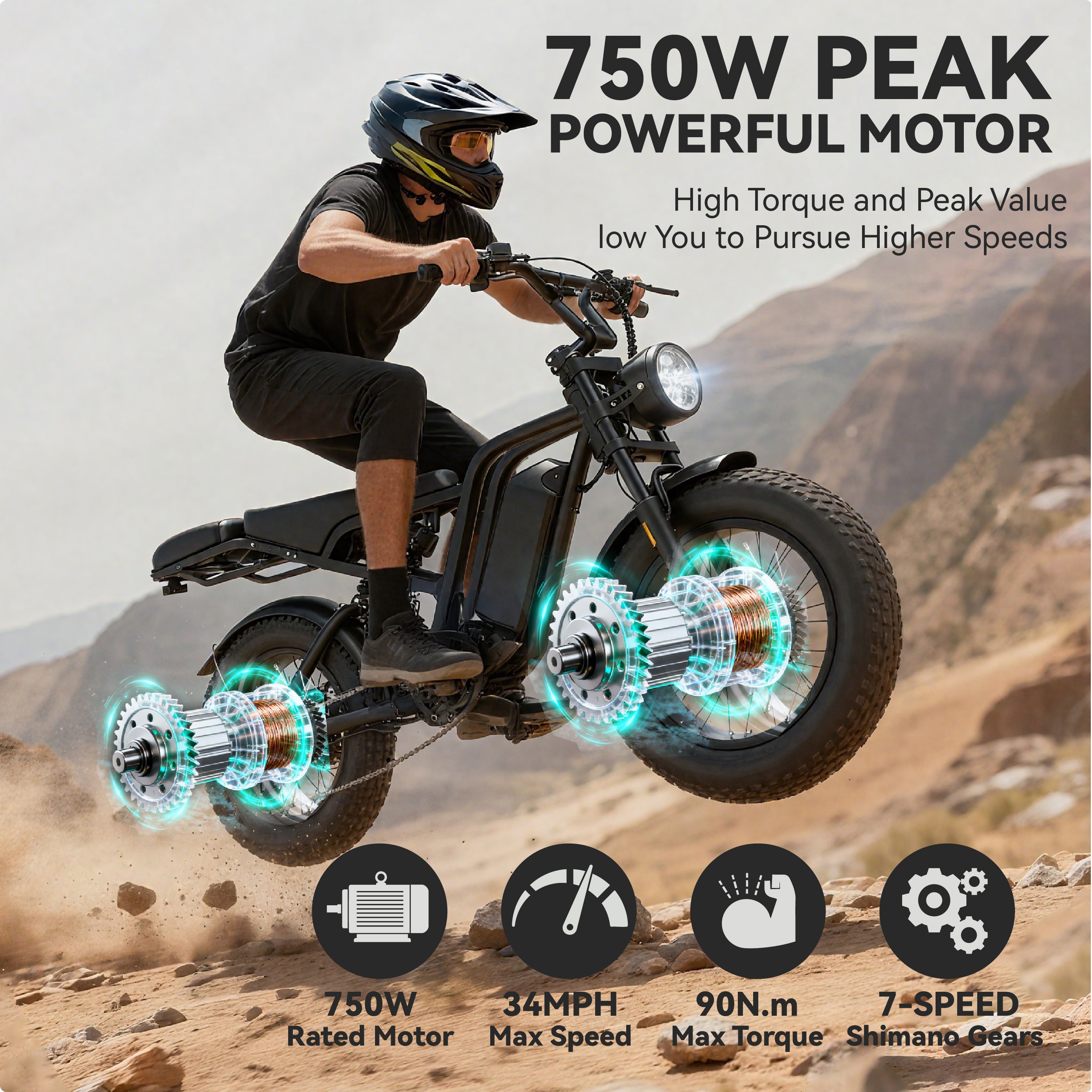 Experience Unmatched Speed and Efficiency with our Fat Tire E-bikes reaching up to 34MPH Max Speed.